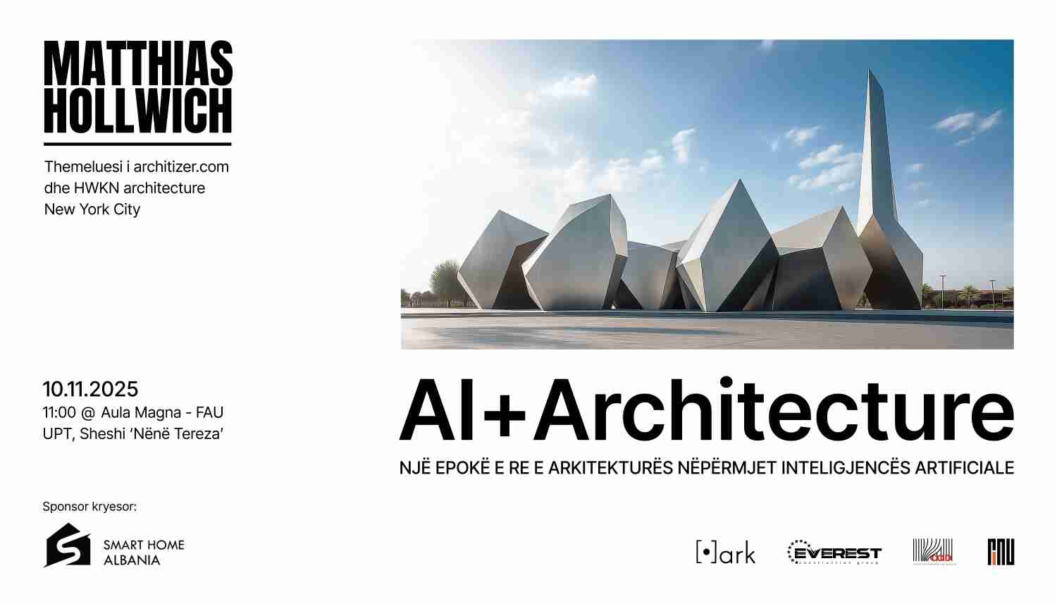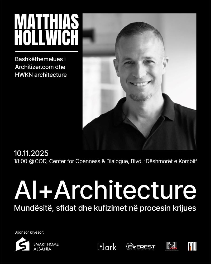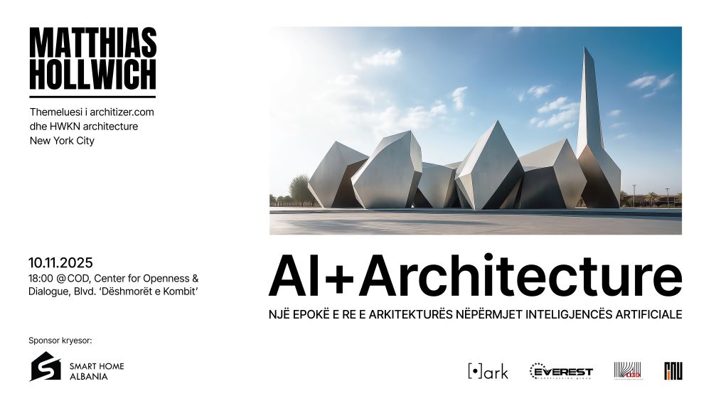 The aim of this event is to open a professional conversation on the transformative influence of Artificial Intelligence in architecture and the processes of conceptualization and design. Through the experience of internationally renowned architect Matthias Hollwich, co-founder of Architizer.com and HWKN Architecture.
