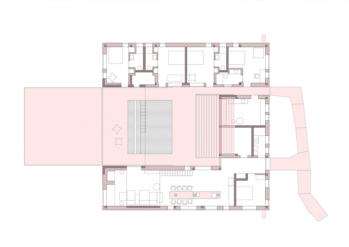 Red House seeks to respond to the redefinition of a single multigenerational home for a composed and dispersed family, through an architecture that understands and makes use of the climatic potential and conditions of the area.