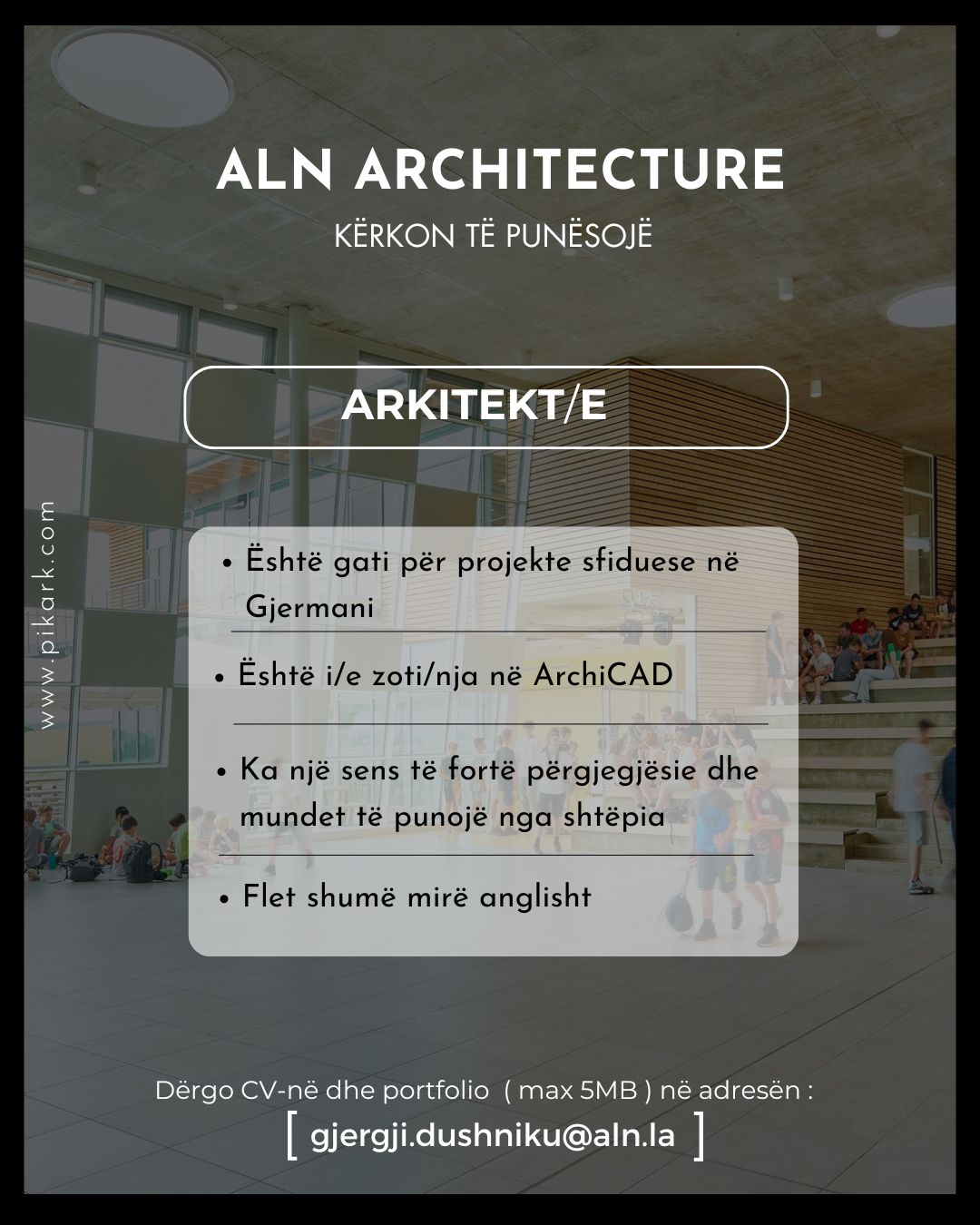 ARCHITECT (Full-time / Remote) ALN (www.aln.la), an international studio based in Germany, is looking for an experienced architect to work remotely from Albania.