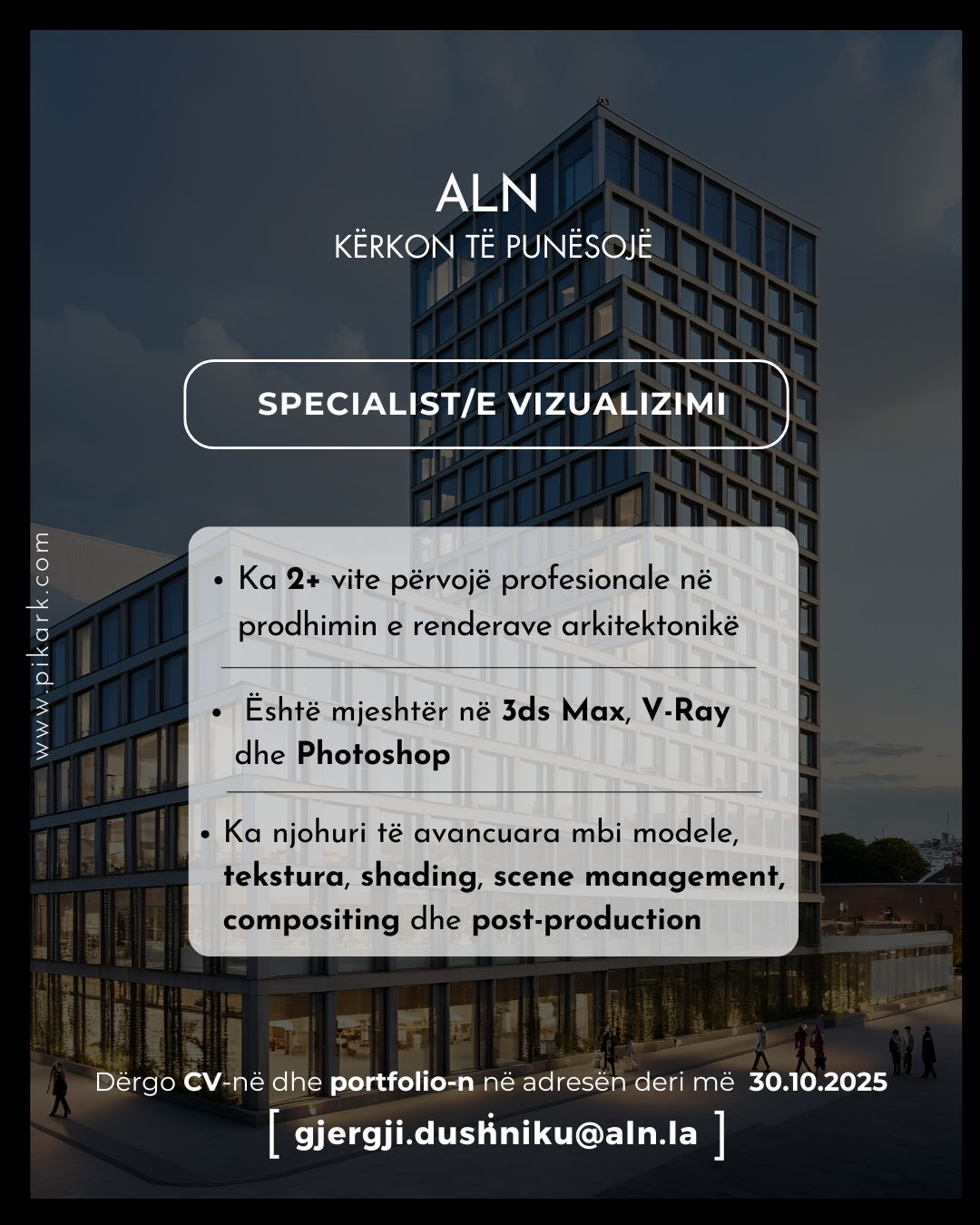 ALN studio ndërkombëtare me qendër në Gjermani, po kërkon një specialist/e vizualizimi për të punuar remote nga Shqipëria.