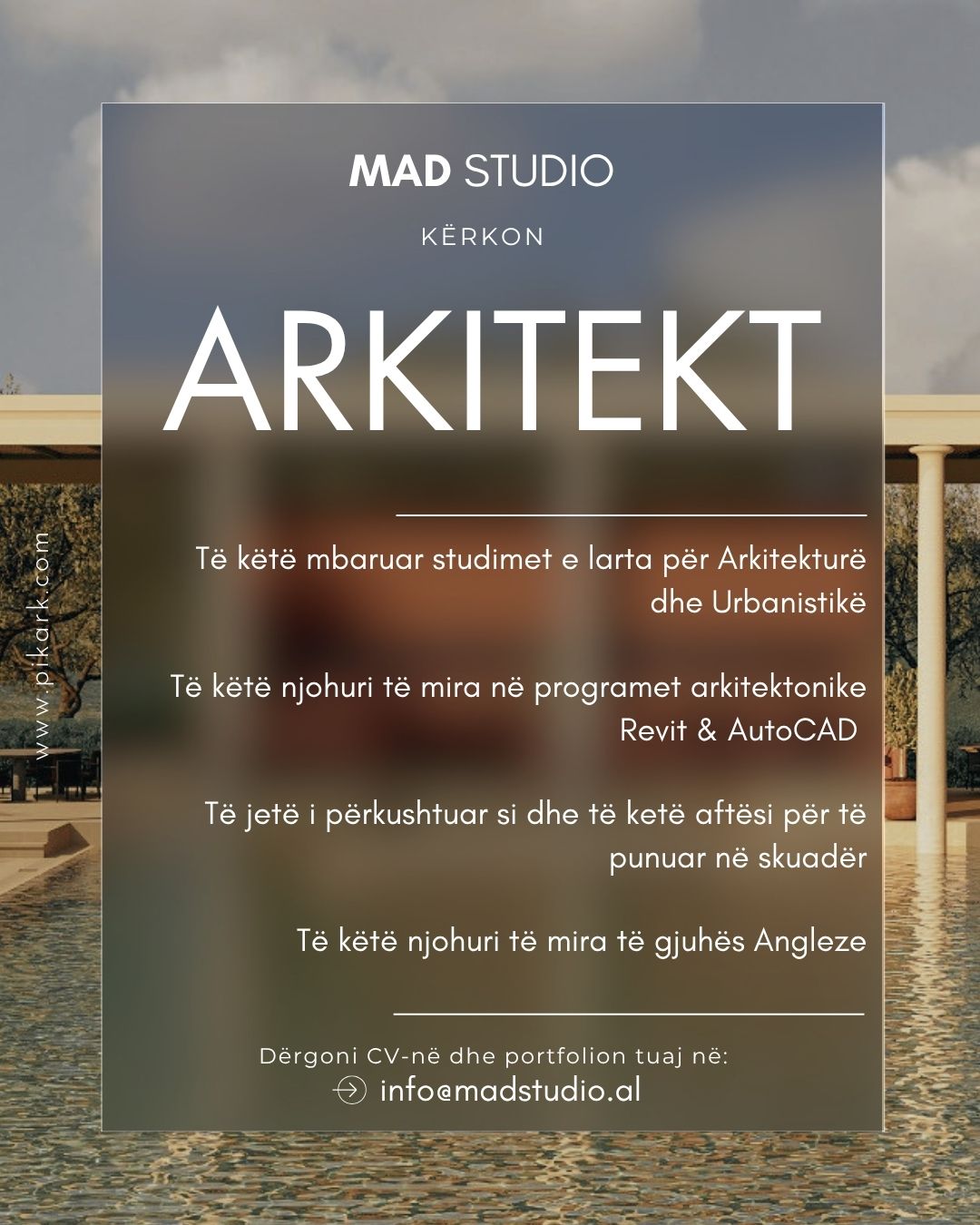 Një tjetër mundësi për ju që jeni në kërkim të një pune të re si arkitekt/e! MAD studio po kërkon të punësojë arkitektë pranë ekipit të saj!