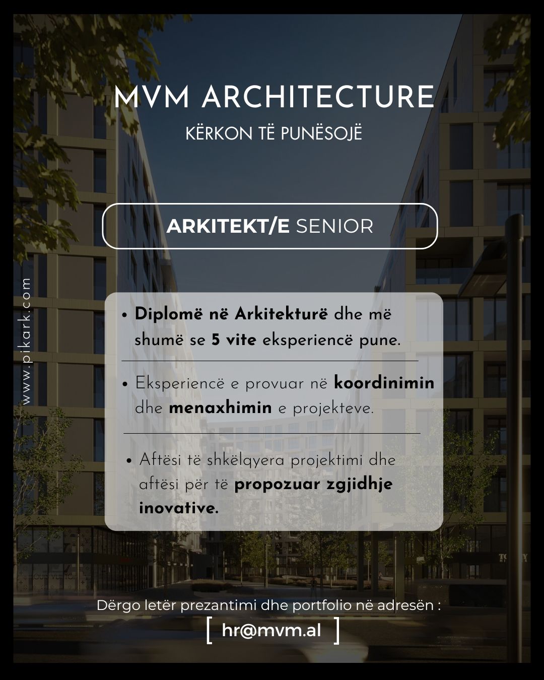 MVM Architecture, Construction and Development is looking to hire a Senior Architect with 5+ years of professional experience.